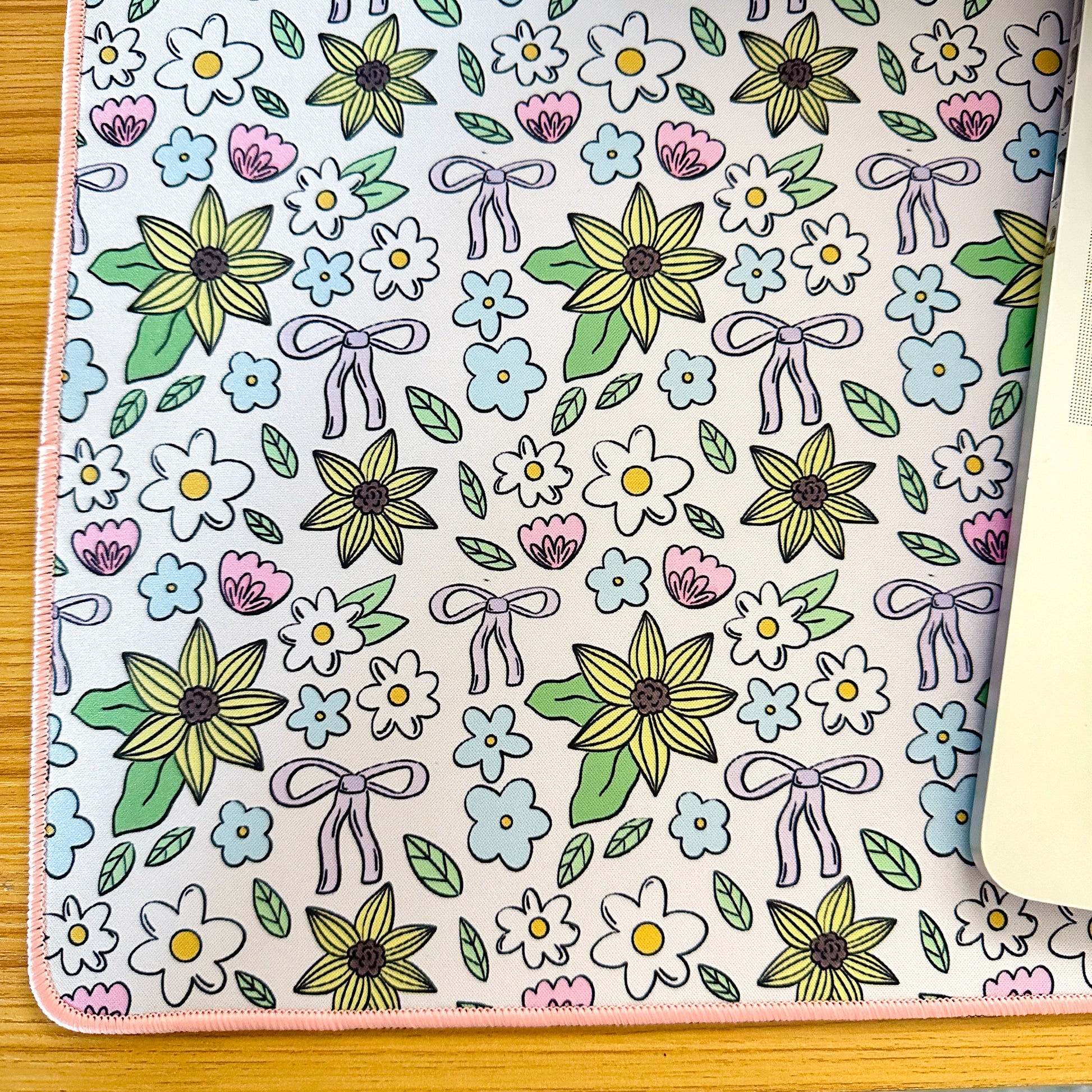 Desk Mats are made of the same material as mouse pads with a non slip bottom and super cute designs on the top! They work as a mouse pad as well as a non slip (cute) surface protector for any desk.